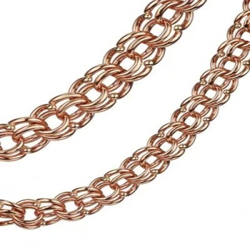 Цепочка на шею мужская из красного золота 585 пробы. Бисмарк - одно из самых сложных и красивых ручных плетений. Цепь на шею мужская – прекрасный подарок для близкого человека, который любит подчеркивать свой статус и вкус. Красивая цепочка из золота 585 пробы с алмазной гранью прекрасно смотрится и на женщине. Крепкое плетение подходит для крестика, для иконки. Украшение на шею имеет крепкий, надежный замок. Ширина цепи 0,6 см.